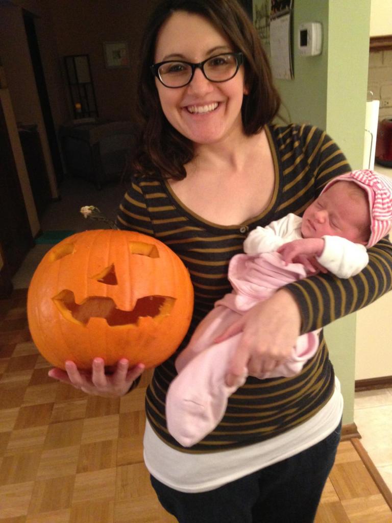 This picture of me holding Ila on what would be her first Halloween brings back so many postpartum memories. Ruth was just shy of her first birthday and newly walking, while Ila was two weeks away from exclusively formula feeding as the end of my six week maternity leave from the bank drew near. As if that last sentence wasn’t enough to fill me with all of the feelings, I was drowning in Postpartum Depression and Anxiety. I hazily remember waking up from my barely there slumber in full on panic, clutching Ila and hyperventilating while sobbing on a regular basis. Fortunately for me, I had an amazing partner in Brian and he took care of Ruth for Ila’s first year of life. Without his love and kindness I truly do not think I would be here today. Believe me when I tell you that I can only remember bits and pieces of that first year with our precious little middle because of my chronic disassociation. Sifting through pictures from this time period of our lives only slightly registers my initial moments with our daughter who I was absolutely terrified of losing even though she was beside me for much of the time.